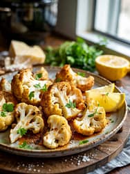 Toss warm cauliflower with 2 tbsp grated Parmesan, 1 minced garlic clove (or ½ tsp garlic powder), and 1 tbsp lemon juice. Finish with parsley and extra Parmesan.