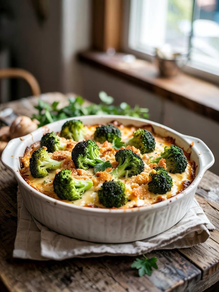 - Broccoli & Bacon Casserole: Add 6 slices cooked, crumbled bacon — fold into the sauce for smoky depth.