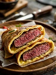 - Steak au jus wrap: Drizzle a spoonful of reduced beef jus inside the wrap for a restaurant-style finish.
