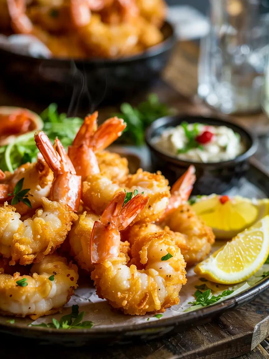 A typical serving (6–8 pieces) will vary by shrimp size and frying method but expect moderate calories due to frying. To lighten the meal, pair with plenty of bright vegetables, citrus, and a lighter dipping sauce (yogurt + herbs instead of mayo).