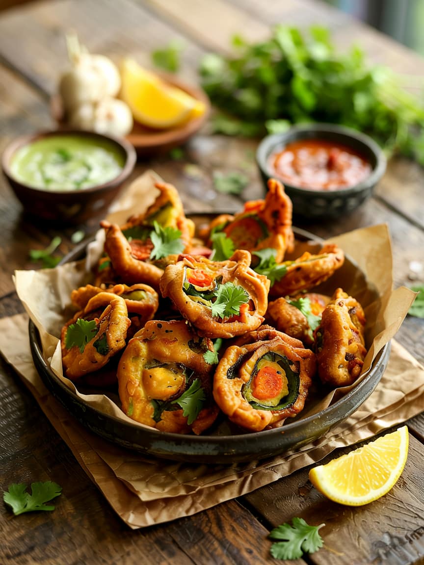 Pakoras are best served hot and accompanied by vibrant chutneys and warm drinks.