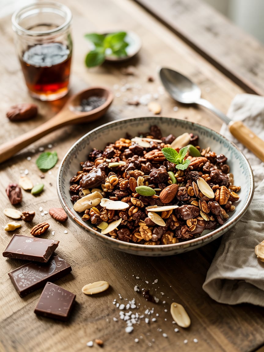 - Add espresso powder (1 teaspoon) to intensify chocolate flavor. For an adult twist, toss finished granola with 1 tablespoon of bourbon or rum (works best if you briefly warm it to let alcohol evaporate slightly).