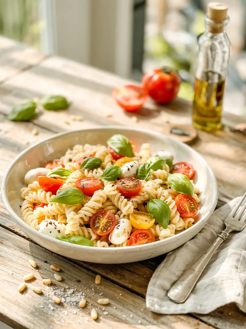 At its core, the Caprese flavor profile is pure and straightforward: sweet, acidic tomatoes; creamy, milky mozzarella; and fragrant basil. When you add al dente pasta into the mix, you get a dish that’s filling but still bright and light. The dressing is intentionally simple — good olive oil, a splash of vinegar or lemon, and salt and pepper — so the quality of the ingredients shines through.