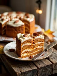 A well-presented cake elevates the experience. For a warm, rustic look, leave the cake unfrosted and dust it lightly with powdered sugar, then scatter toasted pepitas and a few autumn leaves (not for eating) on the plate. For a showpiece, a thin layer of cream cheese frosting “crumb coat” and a final thicker coat, smoothed with an offset spatula, gives a polished look. Garnish with candied pecans, a cinnamon stick, or a drizzle of maple syrup.