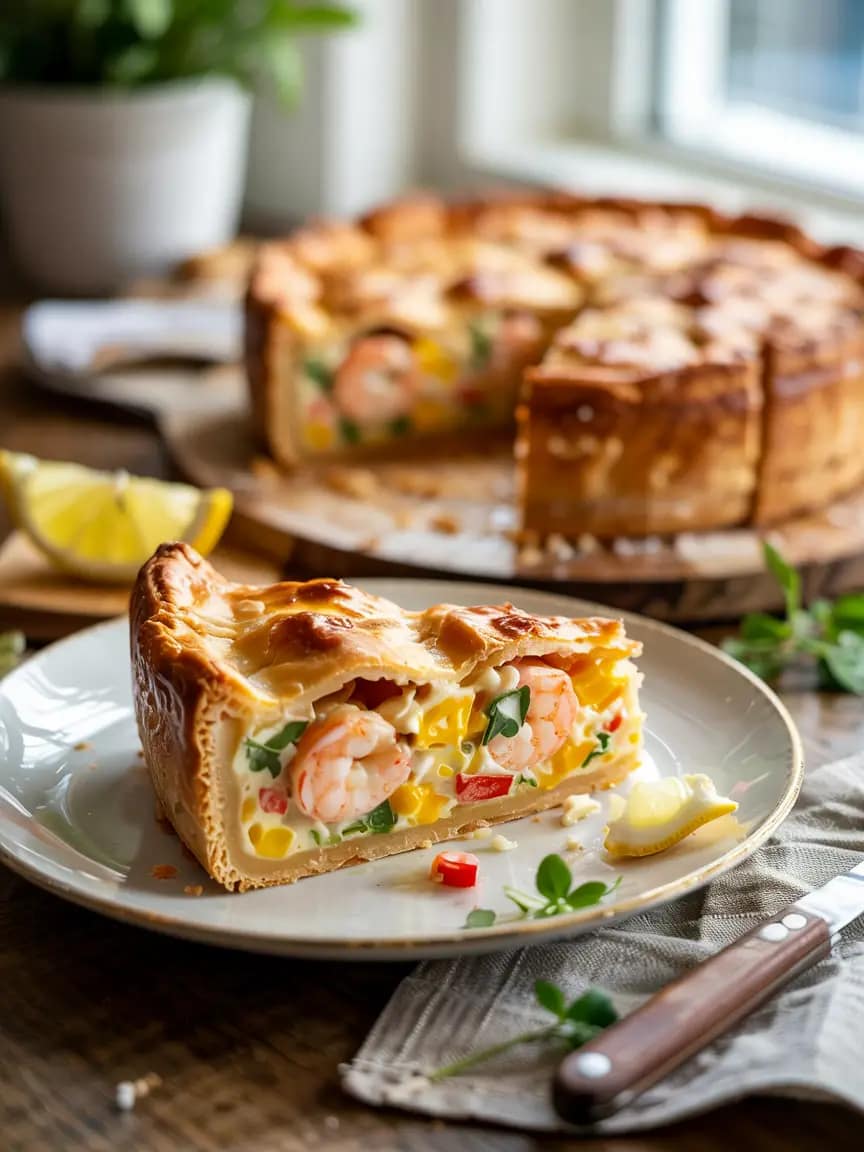 - Taste filling before adding shrimp and crust. Adjust salt carefully — cheeses, stocks, and seasonings contribute. If the pie is over-salted after baking, balance with acidity (a squeeze of lemon) and serve with a plain salad or unsalted sides.
