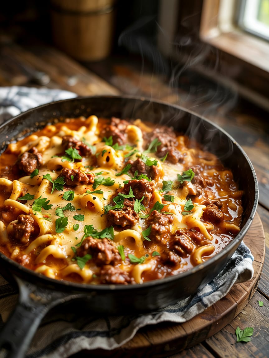 This homemade version lets you control fat and sodium. Using lean ground beef reduces saturated fat; using low-sodium broth controls salt. Exact calories vary by ingredients and portion size — roughly 450–650 calories per serving depending on meat, cheese, and portion.
