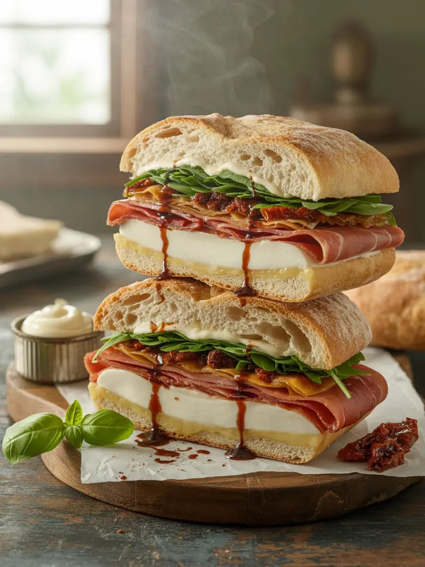 This Gourmet Ciabatta Sandwich Recipe is a formula as much as it is a specific set of ingredients. Think in layers: toast for structure, a flavorful spread as the foundation, creamy cheese to moderate acidity, a savory protein for satisfaction, bright pickled or roasted vegetables for balance, and finishing acid to bring everything to life. Once you know the structure, you can riff endlessly — swap proteins, choose seasonal vegetables, try different nutty pesto bases or herb mixes. The result is always the same: a sandwich that feels intentional and delicious.
