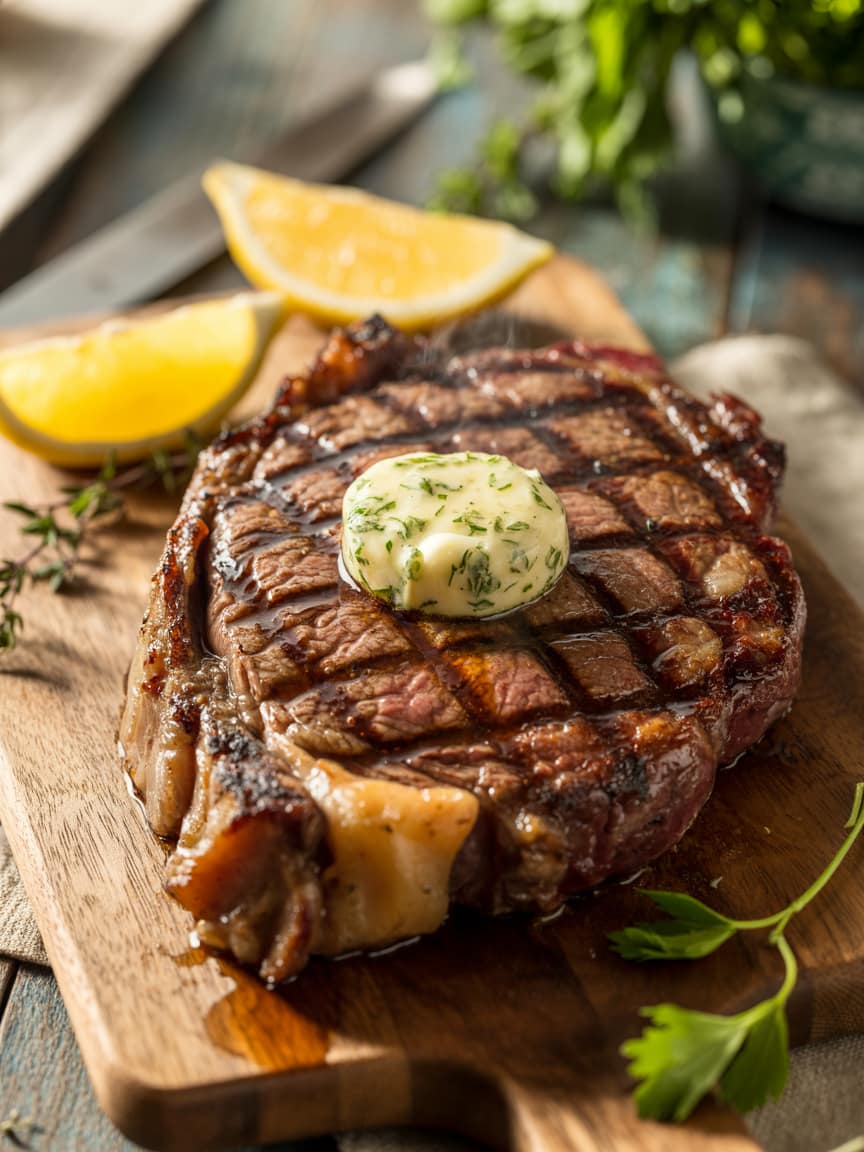 - Rest the Steaks: Transfer grilled ribeyes to a clean cutting board. Tent loosely with aluminum foil and let rest for 5–10 minutes.