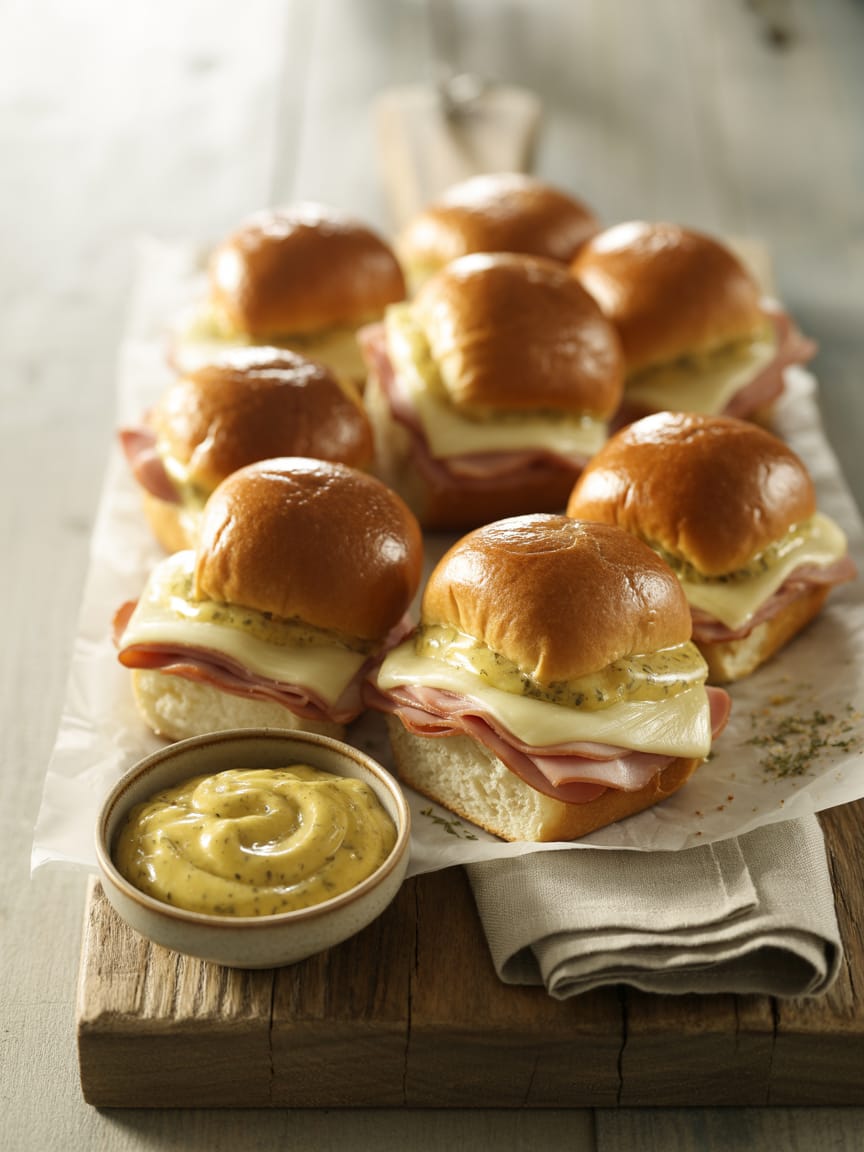- Italian‑Style Sliders: Layer prosciutto, fresh mozzarella, and basil leaves; swap Dijon for pesto in the glaze.