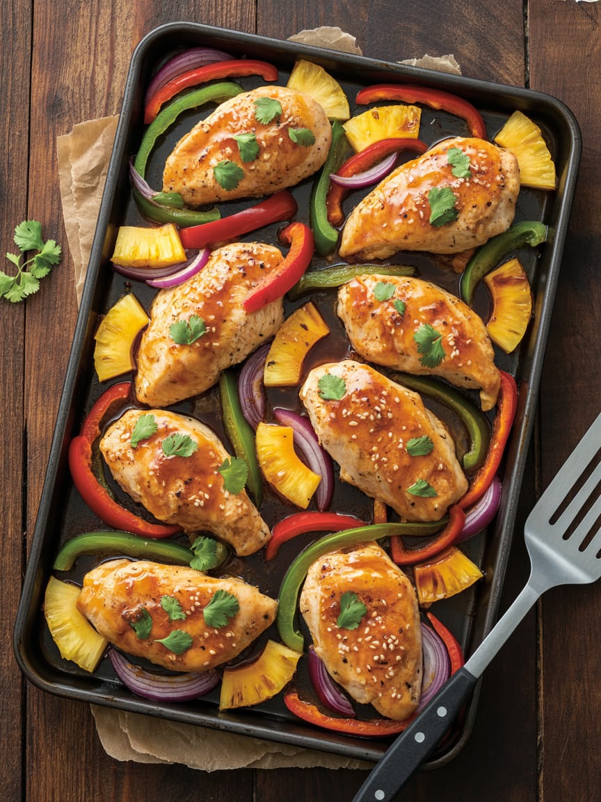 The Hawaiian Chicken Sheet Pan Recipe is the epitome of delicious simplicity—combining succulent chicken, caramelized pineapple, colorful vegetables, and a sticky-sweet honey-soy glaze into one effortless meal. With minimal cleanup, endless customization options, and a flavor profile that transports you straight to the tropics, this recipe is destined to become a weeknight staple.