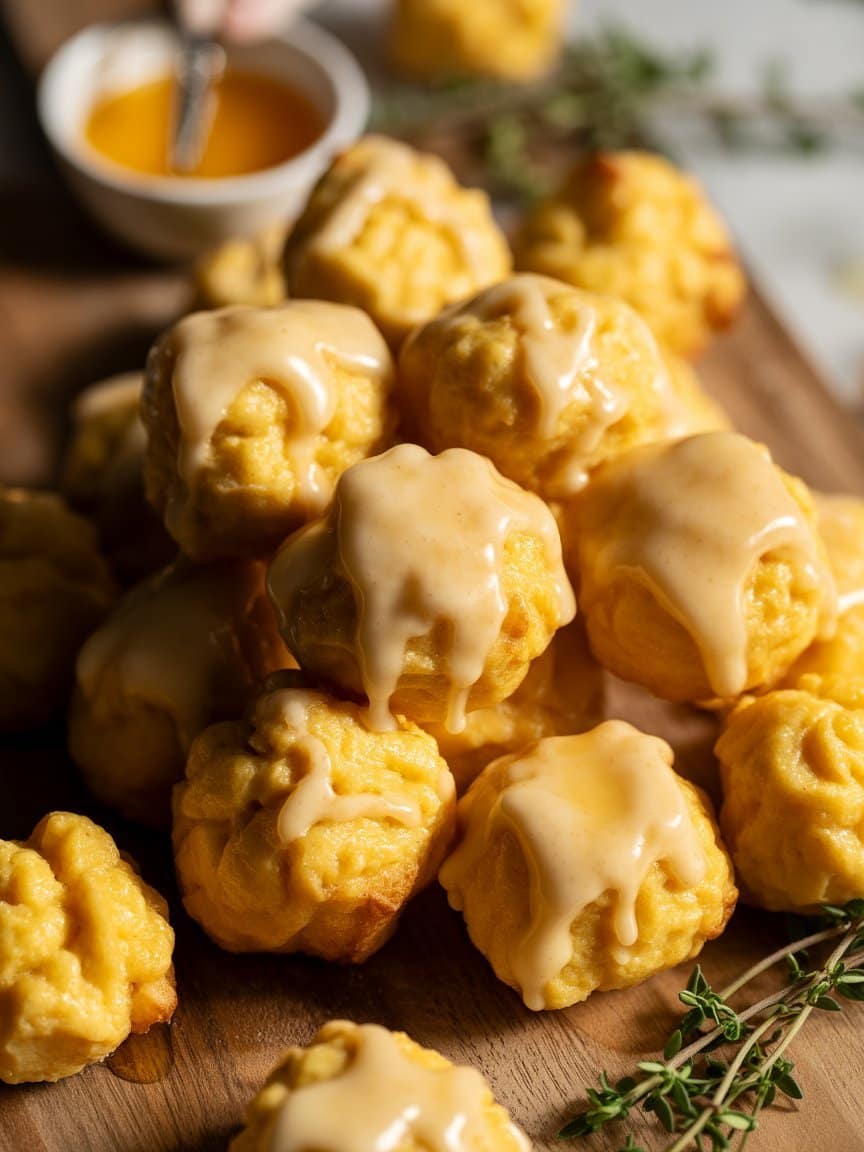 - Brush & Cool: Allow poppers to rest 1–2 minutes in pan, transfer to a rack over a tray, then brush each with honey-butter glaze. Cool 5 minutes before serving.