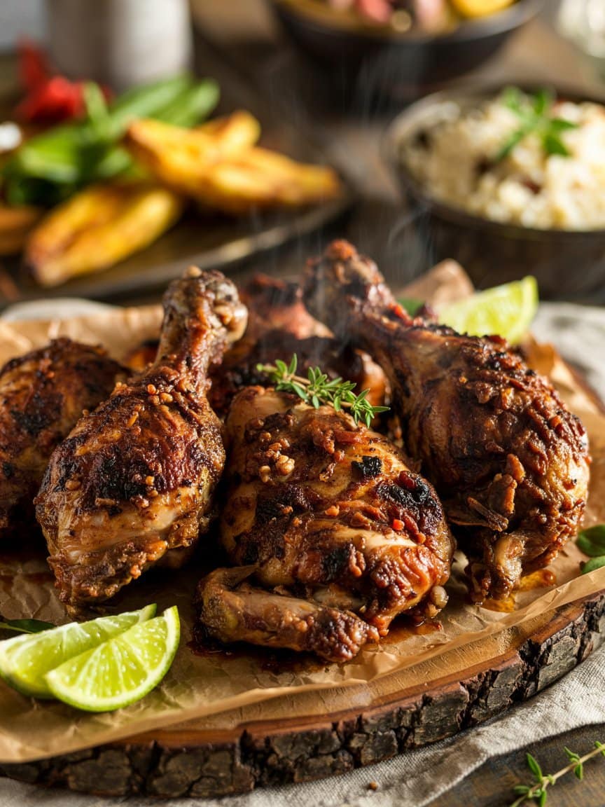 Jamaica’s Jerk Chicken Recipe is bold, soulful, and built on contrasts: spice and sweet, char and juice, smoke and citrus. Treat the marinade like a flavour investment: the longer it sits, the more it sings. When you plate, think color (bright slaw, lime wedges, green scallion), texture (crispy skin vs soft rice), and aroma (fresh thyme, citrus zests). Invite guests to squeeze lime across the chicken at the table — that final acid lift brightens everything.