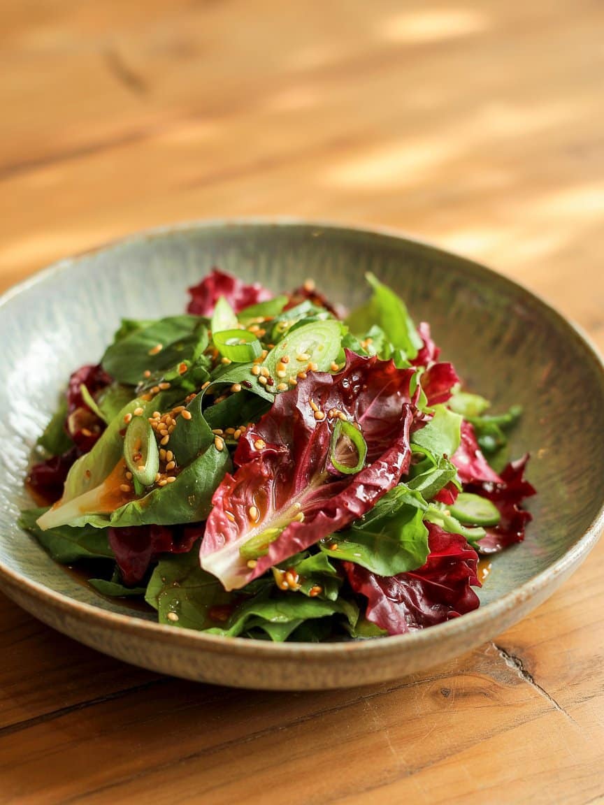 - Taste and finish: Sample a leaf. Add more dressing, a pinch of salt, or black pepper if needed. Finish with a final light drizzle of sesame oil (for aroma) and a sprinkle of remaining sesame seeds.