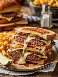- Dietary swaps: For a lighter option, use leaner ground turkey and a softer bread; for vegetarian, use a store-bought black bean or plant-based patty and keep the cheese and onions (or use plant-based cheese).