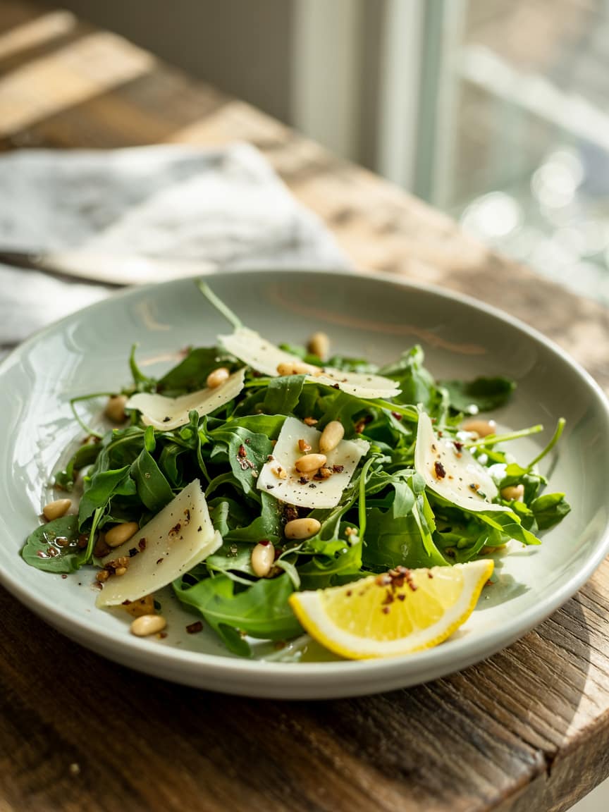 - Balance textures — arugula’s tenderness benefits from a crunchy element (nuts, seeds, or crisp celery) and a salty component (shaved hard cheese, olives) to make the flavors pop.