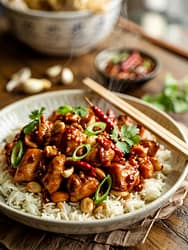 - Presentation: Plate on a shallow bowl of rice, scatter crunchy peanuts and sliced scallions on top, and serve lime wedges on the side for optional brightness.