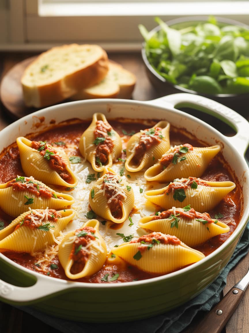 To create a well-rounded meal, pair these beef-stuffed shells with complementary sides: