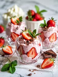 - Garnish: Top with reserved strawberry halves, a few finely chopped toasted almonds, grated sugar-free dark chocolate, or a sprig of mint.